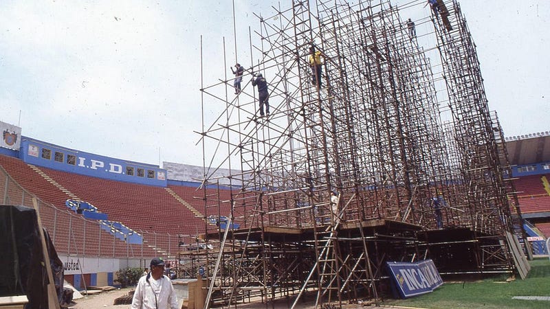 A produção do evento começou dias antes, com o gigantesco palco sendo montado e equipamentos de som e iluminação chegando a bordo de imensos aviões Antonov.